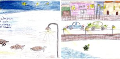 Esq: Pena os animais não saberem que a luz brilhante não é o que pensam - as estrelas guia para chegar ao mar. Crédito: Seyuanbou Drame