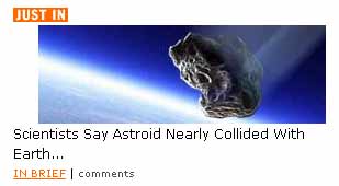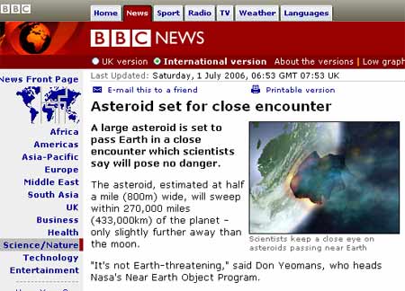 Olhe para o cabeçalho: “Asteróide a caminho de encontro próximo”, e por debaixo deste: “Um grande asteróide passará pela Terra num encontro rente no qual os cientistas afirmam não haver perigo.”