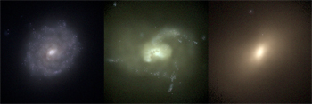 As galáxias vermelhas e azuis são relativamente comuns, mas as verdes são raras e é muito provável que estejam numa fase importante da sua evolução, transitando do azul - quando as estrelas e os planetas