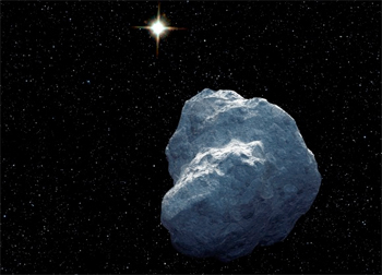 Ilustração de um objeto transneptuniano (TNO). O Sol é reduzido a uma estrela brilhante a uma distância de mais de 4,8 mil milhões de quilómetros. Crédito: NASA.