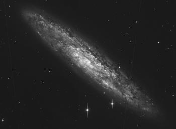 Imagem de NGC 253 obtida através de um filtro azul pela câmara WFI, no telescópio de 2,2 metros no Observatório de La Silla (Chile). Crédito: ESO.