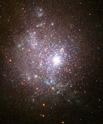 Galáxias anãs irregulares partilham muitas semelhanças com as galáxias muito jovens, mas estão muito mais próximas de nós e são mais fáceis de estudar. Estas galáxias parecem ter consumido apenas uma pequena parte do seu reservatório de gás. As suas estrelas possuem uma abundância em elementos pesados muito mais baixa do que o Sol