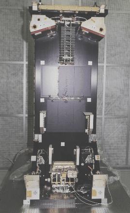 O espectrógrafo de radiação ultravioleta a bordo do FUSE (NASA) foi construído na Universidade do Colorado (EUA). A luz percorre o caminho desde o elemento dispersivo, no topo, até o detector, em baixo. Crédito: NASA/JHU/APL/Univ. Colorado.