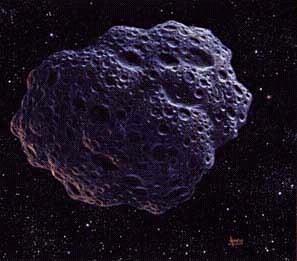 Visão artística de um asteróide. Crédito: David A. Hardy.