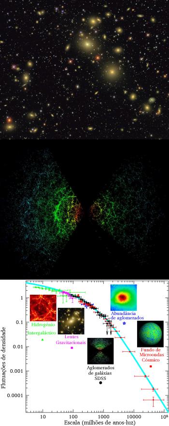 de nós, e cobre cerca de 6% do céu. O estudo do padrão de aglomeração das galáxias é extremamente importante, pois contém informação, não só sobre a matéria invisível que agrega as galáxias, mas também sobre as flutuações que emergiram do Big Bang.