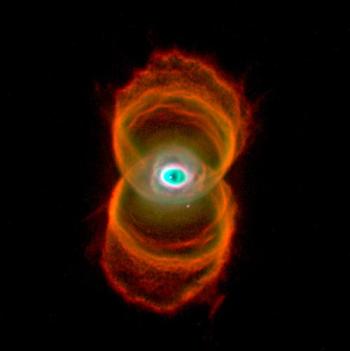 A nebulosa da Ampulheta numa imagem obtida pela câmara WFPC2 do Telescópio Espacial Hubble. É um exemplo espectacular das formas que as nebulosas planetárias podem assumir. Crédito: R. Sahai & J. Trauger (JPL), WFPC2, NASA.