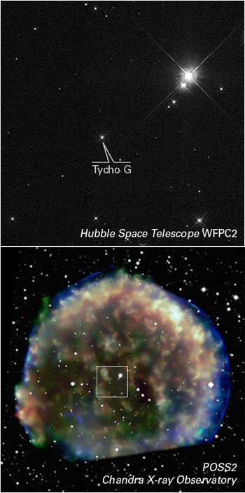 Quatrocentos e trinta e dois anos depois da explosão observada por Tycho, os astrónomos conseguiram identificar, na região do espaço imersa numa extensa bolha de gás quente que constitui o remanescente de supernova, uma estrela, semelhante ao Sol