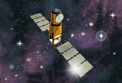 Visão artística do satélite COROT. Crédito: CNES/Active Design.