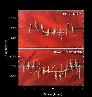 proveniente de dois planetas extra-solares, previamente descobertos: HD 209458b e TrES-1. São planetas gigantes gasososRegião do espectro electromagnético compreendida entre os comprimentos de onda de 0,7 e 350 mícrones. Esta banda permite observar astros, fenómenos, ou processos físicos com temperaturas entre 10 e 5200 graus Kelvin.