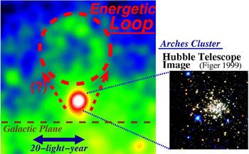 Nesta altura ainda não se sabe com certeza se a estrutura em anel está fisicamente relacionada com o enxame Arches, ou se acontece estar apenas na mesma linha de visão. Se as observações futuras mostrarem que o enxame é responsável pela configuração, esta descoberta sugere que a actividade de formação estelar representa um papel muito importante na energia do Universo.
