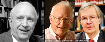 Roy Glauber ganhou metade do Prémio Nobel da Físcia de 2005, pela sua contribuição para a Teoria Quântica da Óptica Coerente. A outra metade foi partilhada por John Hall e Theodor Hänsch, pelas suas contribuições para o desenvolvimento da espectroscopia laser de alta resolução. Crédito: J. Reed,CU/L.Harwood,MPQ.