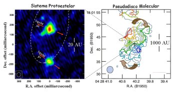 (Very Large Array), um grupo de astrónomos obteve imagens, com uma qualidade sem precedentes, de um jovem sistema estelar múltiplo, reunindo importantes detalhes sobre a formação destes sistemas. A maioria das estrelasO VLA é um radiointerferómetro composto por 27 antenas de 25 m de diâmetro, dispostas em três braços (em forma de Y) com 9 antenas cada, localizado no Novo México (EUA). O VLA é operado pelo NRAO (National Radio Astronomy Observatory).