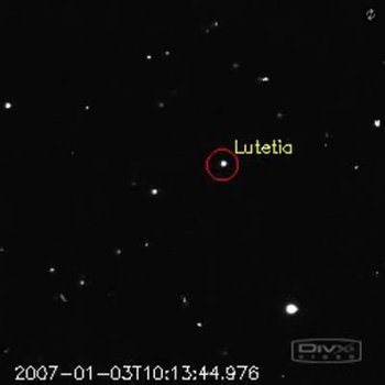 21-Lutetia, um dos objectivos da sua longa missão. A câmara OSIRIS (Optical, Spectroscopic and Infrared Remote Imaging System), a bordo da sonda, obteve imagens do asteróide enquanto aquele passava no seu campo de visão, durante a aproximação gradual da sonda ao planetaUm asteróide é um pequeno corpo rochoso que orbita em torno do Sol, com uma dimensão que pode ir desde os 100 m até aos 1000 km. A maioria dos asteróides encontra-se entre as órbitas de Marte e de Júpiter. Também são designados por planetas menores.