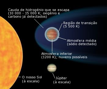 da estrela de tal forma que a atmosfera superior expande e o gás escapa-se do planeta, formando uma cauda de gás.