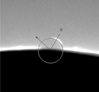 Imagem que mostra a luz solar refratada observada durante 2004 com um coronógrafo usando um refrator de 9 cm. Crédito: Tanga et al., 2012.