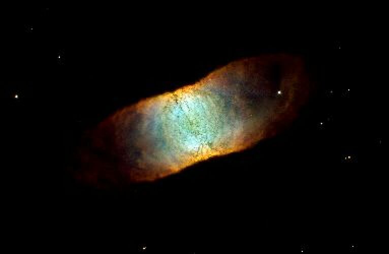 , a Nebulosa da Retina (IC 4406) apresenta uma grande simetria: os lados direito e esquerdo desta imagem do Hubble são quase o espelho um do outro. Se pudéssemos voar em torno de IC 4406 numa nave espacial, veríamos que os gases e poeiras formam um grande donut de material ejectado da estrelaAs nebulosas planetárias são nebulosas formadas por camadas de gás expelido por estrelas de pequena massa, que terminaram a sua fase de estrela gigante vermelha e se encontram no fim da sua vida. No centro da nebulosa planetária, a estrela transforma-se numa anã branca quente e é a radiação que emite que faz a nebulosa brilhar. As nebulosas planetárias não têm nada a ver com planetas, mas obtiveram o seu nome porque quando observadas através de um pequeno telescópio, se assemelham a um disco de um planeta.
