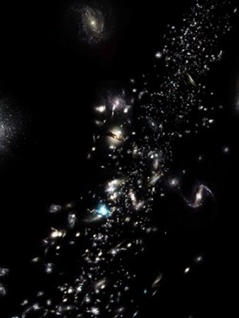 A distribuição da matéria no Universo depende, em parte, da energia dos neutrinos. Os dados de um vasto estudo de galáxias apontou um novo limite para a massa destas partículas. Crédito: 2dF GRS.