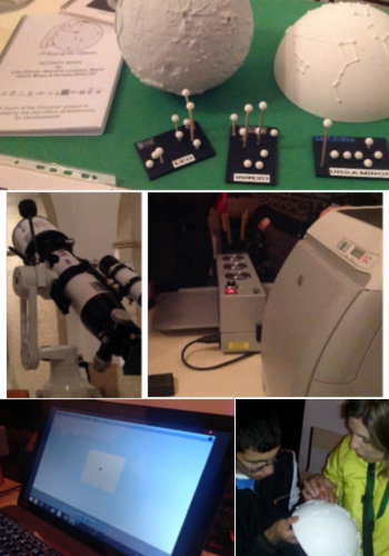 Estes telescópios estavam ligados a webcams que captavam os objetos celestes observados no momento e no local por todos os participantes. Utilizando um software de edição, as imagens foram impressas numa impressora térmica, recorrendo a um tipo de papel especial que ganha volume quando aquecido. Isto permitiu ao público cego ou com baixa visão presente no evento percecionar os objetos que estavam a ser observados naquele preciso momento conjuntamente com os restantes participantes da concentração.