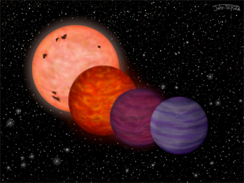 , durante uma boa parte da sua juventude pode ter sido tão quente como uma estrelaUm planeta é um objecto que se forma no disco que circunda uma estrela em formação e cuja massa é superior à de Plutão (1/500 da massa da Terra) e inferior a 10 vezes a massa de Júpiter. Ao contrário das estrelas, os planetas não produzem luz, apenas reflectem a luz da estrela que orbitam.