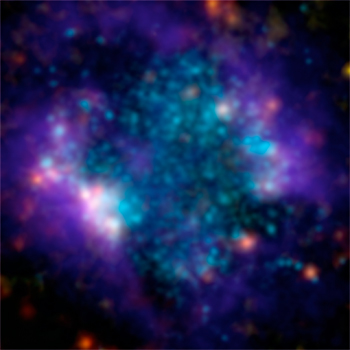 Dados de arquivo de Spitzer e do GALEX foram usados para determinar a taxa de formação de estrelas. O Spitzer vê a luz infravermelha de comprimento de onda mais curto, que vem da poeira que é aquecida pelas novas estrelas. As imagens do GALEX capturam a luz ultravioleta