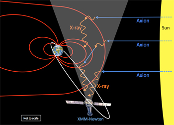 da Terra". Prevê-se que o sinal de raios-X devido aos axiões seja maior quando se olha através do lado virado para o Sol do campo magnético, porque é aqui que o campo é mais forte.