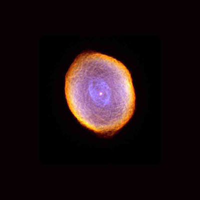 Esta nebulosa planetária encontra-se a cerca de 2000 anos-luz e pertence à constelação da Lebre. Nesta imagem pode ver-se estranhas texturas, fazendo lembrar rugas, em toda a extensão da nebulosa. Contudo, a sua origem permanece incerta. Uma nebulosa planetária representa o estágio final da vida de uma estrela como o Sol. A estrela central, foi, outrora, uma gigante vermelha que ejectou as suas camadas mais exteriores para o espaço, originando uma nebulosa com um diâmetro de 0,1 anos-luz. O que restou da estrela é apenas o núcleo quente da gigante vermelha que, através da sua radiação ultravioleta, excita o gás da nebulosa. A emissão de radiação por parte de azoto ionizado (o gás mais frio localizado na parte mais afastada do núcleo) está indicada a vermelho. A verde e azul temos, respectivamente, emissão de hidrogénio e oxigénio ionizado. Nos próximos milhares de anos, a nebulosa irá dispersar, e a estrela central arrefecerá, enquanto anã branca, por milhares de milhões de anos. Tal será igualmente o destino do nosso Sol.