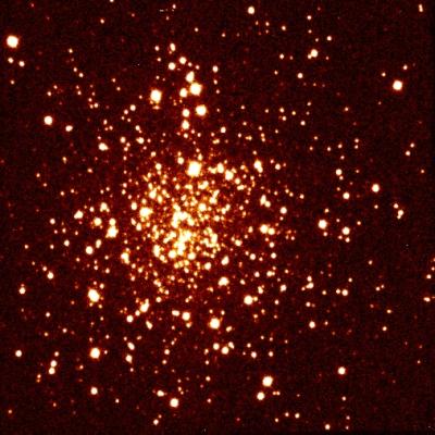 Esta imagem, obtida no infravermelho na banda H (1,65 mícrones) e com um tempo de exposição de apenas 12 s, mostra o enxame globular NGC 1261. A imagem cobre um campo de 2,5x2,5 minutos de arco. Em termos de orientação, a direcção Norte fica para cima e a direcção Este fica para a esquerda. Obtida com a câmara de infravermelhos SOFI, de 1024x1024 pixéis, acoplada ao telescópio NTT de 3,5 m, esta imagem tem uma resolução impressionante, com cada um dos pixéis correspondendo a apenas 0,14 segundos de arco. Dada a qualidade da atmosfera na noite de observação, a dispersão da luz de cada estrela é muito pequena (cerca de 0,7 segundos de arco), resultando numa imagem extremamente nítida. Este enxame encontra-se a uma distância de cerca de 53 500 anos-luz do Sol e pertence à constelação austral do Relógio. A sua distância ao centro da Galáxia é de 59 400 anos-luz. O seu diâmetro aparente é de cerca de 7 minutos de arco. Este enxame foi descoberto por James Dunlop no dia 24 de Novembro de 1826, tendo sido por ele catalogado como o enxame Dunlop 337. Estudos recentes mostraram que NGC 1261 parece ser mais jovem do que a vasta maioria dos enxames globulares da nossa galáxia.