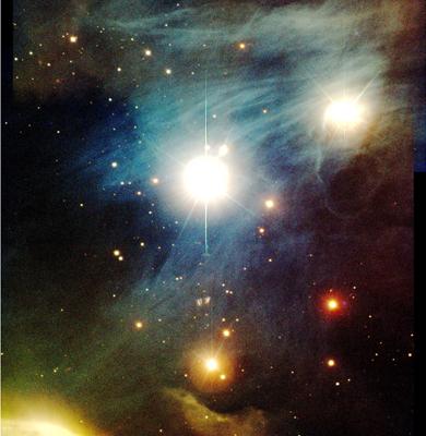 Esta imagem revela uma área de nuvens moleculares escuras, de nebulosas brilhantes e de estrelas jovens no Complexo do Camaleão I. Esta é uma das regiões de formação de estrelas mais próximas, apenas a cerca de 500 anos-luz, na constelação do Camaleão, perto do pólo sul celeste. Muitas das estrelas neste campo têm somente alguns milhões de anos e algumas encontram-se envoltas no material circum-estelar. A região a azul é uma nebulosa de reflexão, em que pequenas partículas de poeira reflectem a luz das estrelas que as iluminam. A estrela jovem e brilhante, quase central, é HD 97048, de magnitude 9. Em baixo à direita, uma nuvem molecular escura bloqueia a luz das estrelas que se encontram por detrás dela. Nesta região de formação de estrelas, já foram identificados membros com massas de apenas uns centésimos da massa do Sol. Estes objectos designam-se por anãs castanhas e não possuem massa suficiente para se tornarem verdadeiras estrelas.