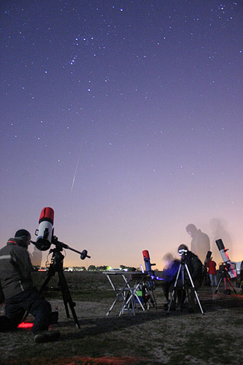Orion passa alto, acompanhado pela Lebre por baixo e por Erídano à direita, vigilante sobre o campo onde um grupo de astrónomos aproveita mais uma fria e limpa noite de inverno para mergulhar nas profundezas da nossa galáxia e desvendar os seus segredos. Por baixo da Lebre passa uma pequena estrela cadente, satisfazendo algures o desejo de alguém, que poderia perfeitamente ser "céu limpo e estável".