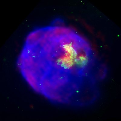 Crédito: Raios-X: NASA/CXC/Rutgers/J.Warren; Óptico: NASA/STScI/U. Ill/Y.Chu; Rádio: ATCA/U. Ill/J.Dickel.