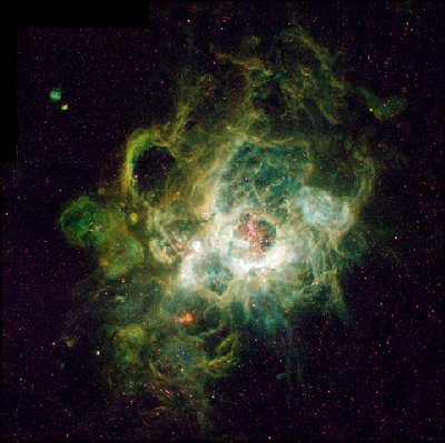 A nebulosa NGC 604, descoberta por William Herschel em 1784, situa-se na nossa galáxia vizinha M 33, distante cerca de 2,7 milhões de anos-luz da Terra na constelação do Triângulo. Esta nebulosa, situada num dos braços espirais da galáxia, é um dos locais onde novas estrelas estão a nascer. Embora este tipo de nebulosas seja comum em galáxias, esta é particularmente grande, com cerca de 1500 anos-luz de extensão. No seu interior estão mais de 200 estrelas quentes, com massas que variam entre 15 a 60 massas solares. Elas aquecem o gás da nebulosa, fazendo-o brilhar. Através do estudo da nebulosa, as astrónomos podem determinar a forma como enxames de estrelas de grande massa afectam a evolução do meio interestelar da galáxia.