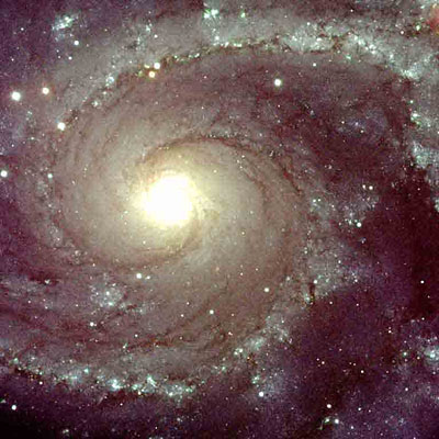 A galáxia espiral NGC 2997, na constelação austral da Máquina Pneumática, não se encontra virada de frente para nós, mas calcula-se que esteja inclinada de 45 °. O seu disco é pouco espesso, o núcleo é compacto e brilhante, e, nos braços espirais, regiões escuras de poeira são proeminentes. NGC 2997 afasta-se de nós a cerca de 1100 km/s, o que a coloca, segundo as actuais estimativas de expansão do Universo, aproximadamente a 55 milhões de anos-luz. Calcula-se que a sua massa seja perto de 100 mil milhões de vezes a massa do nosso Sol, ou seja, provavelmente tem menos massa do que a nossa Via Láctea. O núcleo encontra-se rodeado por uma cadeia de nuvens quentes gigantes de hidrogénio ionizado. A excelente resolução angular da imagem permite distinguir regiões individuais de formação de estrelas ao longo dos braços espirais. De particular interesse é a forma peculiar e torcida do longo braço espiral da direita.