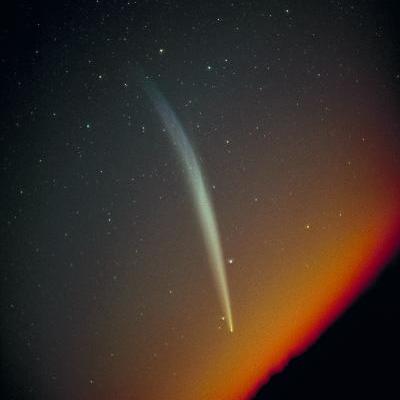 Esta fotografia, obtida pelo astrónomo Roger Lynds na manhã de 29 de Outubro de 1965 no Observatório de Kitt Peak (Arizona, EUA), mostra o cometa Ikeya-Seki próximo do horizonte, com uma espectacular cauda de poeira. Nota-se claramente que a cauda de poeira se apresenta encurvada na sua extremidade, delineando a trajectória no espaço do cometa. Este cometa passou a escassos 450 000 km do Sol (pouco mais do que a distância Terra-Lua!), uma distância à qual a maioria dos cometas conhecidos não poderia sobreviver, dada a intensidade da radiação solar. Após ter passado no periélio, o cometa era tão brilhante que podia ser visto em plena luz do dia, com o Sol tapado por uma árvore ou uma casa. De acordo com o relato da edição de Dezembro de 1965 da conhecida revista Sky & Telescope, houve, no Japão, quem tivesse observado o cometa Ikeya-Seki a apenas meio grau do Sol, tendo sido descrito como 10 vezes mais brilhante do que a Lua cheia! Este cometa, que ficou conhecido como o Grande Cometa de 1965, possui um núcleo com um diâmetro de cerca de 1 km.