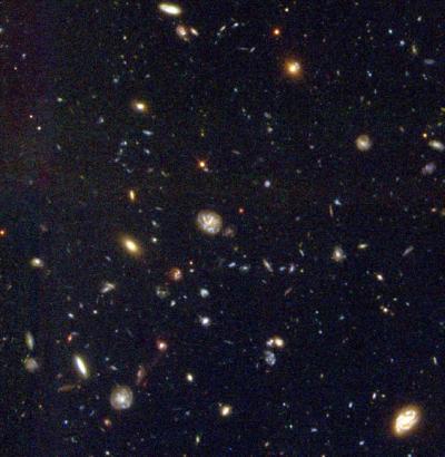 Hubble Deep Field South). Exposições acumuladas durante 10 dias de observação foram combinadas para formar esta espectacular imagem. Estes dois campos profundos espreitam por um corredor de 12 mil milhões de anos-luz de comprimento, onde se apresenta um sortido de galáxias nunca antes detectadas. O Campo Profundo Norte teve um impacto tremendo na Astronomia, tendo revelado uma fracção do Universo nunca antes visto. Estudos posteriores das galáxias descobertas nesse campo levaram a conclusões sobre a taxa de formação de estrelas e evolução das formas das galáxias, no pressuposto de que essa pequena amostra era representativa do Universo. Para validar a hipótese de que o Universo é, de facto, muito semelhante independentemente da direcção para onde se olha, tornou-se necessário um segundo campo, o Campo Profundo do Sul. Desta vez, o campo contém um quasar, cuja luz percorreu nuvens de gás ao longo de milhares de milhões de anos. O efeito do gás na luz do quasar permitirá inferir sobre a estrutura do Universo a três dimensões.
