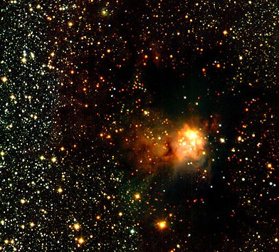 Esta imagem de infravermelho da região RCW 108, obtida com o New Technology Telescope do ESO, fornece uma visão detalhada desta conhecida região de formação de estrelas. Situada a cerca de 4000 anos-luz de distância, RCW 108 é uma nuvem escura contendo no seu interior uma nebulosa de emissão. Dado que esta imagem foi obtida no infravermelho, é possível observar muitas estrelas que se encontram por detrás da nuvem. Isto acontece porque a poeira interestelar é menos opcaca à radiação infravermelha do que à radiação visível. Para além de diminuir o brilho das estrelas, fenómeno a que se dá o nome de "extinção interestelar", a poeira também "avermelha" a luz emitida pelas estrelas. Este efeito, designado por reddenning em Inglês, é claramente perceptível nesta imagem, onde as estrelas que se localizam na direcção da nuvem se apresentam, em média, com uma cor mais avermelhada do que aquelas que se situam mais na periferia da imagem.
