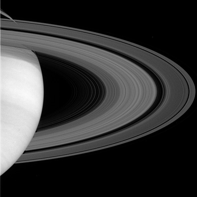 Apesar de parecerem estruturas sólidas, os anéis são constituídos por milhares de milhões de partículas individuais, cada uma orbitando o planeta no seu caminho. Nesta imagem também é possível observar a sombra provocada pelos anéis no globo do planeta, e em cima e à esquerda pode ainda observar como estes são transparentes, deixando ver o planeta por trás, tornando claro que não são uma massa sólida e contínua.