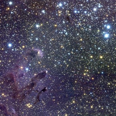 Very Large Telescope), é visível a região central da nebulosa da Águia com as suas famosas colunas de poeira, sugestivamente baptizadas com o nome de "Pilares da Criação". Dado as observações terem-se realizado no infravermelho, é possível ver através destas regiões densas de poeira, pois a extinção é menor nesta região do espectro electromagnético. No canto superior direito da imagem situa-se o enxame de estrelas jovens e quentes NGC 6611, cuja radiação está a esculpir a forma destas colunas de poeira. No interior destas colunas residem glóbulos gasosos que funcionam como casulos embrionários para a formação de novas estrelas. A nebulosa da Águia, também conhecida por M 16, situa-se a aproximadamente 8000 anos-luz de nós, na direcção da constelação da Serpente. É uma região alvo de muitos estudos de formação de estrelas.