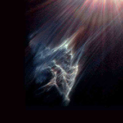 Esta imagem revela uma nuvem de gás interestelar a ser destruída pela passagem, na sua proximidade, de uma das estrelas mais brilhantes do conhecido aglomerado estelar das Plêiades. A imagem revela a luz que é reflectida pelas paredes exteriores da nuvem de gás e poeira ao ser iluminada pela estrela vizinha. Esta nebulosa foi descoberta pelo astrónomo norte-americano E. E. Barnard, em 1890, quando reparou numa nebulosidade muito próxima, a apenas 0.06 anos-luz (cerca de 3500 vezes a distância Terra-Sol), da estrela Mérope do aglomerado das Plêiades, que quase aparece no canto superior direito da imagem. As linhas paralelas que parecem ligar a nebulosa e a estrela Mérope são produzidas pela pressão da radiação da estrela cujo efeito é o de desacelerar as partículas de poeira da nebulosa, enquanto esta se aproxima da estrela a uma velocidade relativa de cerca de 11 km/s. Dado que as partículas de poeira mais leves sofrem maior desaceleração que os grãos mais pesados, estas linhas são, na verdade, torrentes das partículas de poeira maiores e mais pesadas em direcção à estrela.