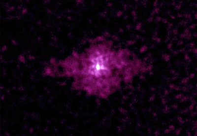 Esta imagem de raios-X, obtida pelo Observatório Chandra, dos restos de uma supernova ocorrida no ano de 1181, mostra uma estrela de neutrões em rotação muito rápida envolvida numa nuvem de partículas de alta energia. Trata-se de um pulsar, conhecido por 3C58, a rodar cerca de 15 vezes por segundo. Estas observações permitiram concluir que o pulsar, embora esteja a diminuir a sua velocidade de rotação, roda practicamente com a mesma velocidade com que rodava quando foi formado. Este facto está em contradição com o que tem sido observado na maioria dos pulsares que se conhece, pelo que está a ser, actualmente, alvo de vários estudos.