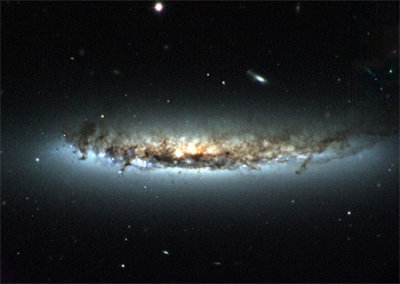 Esta imagem de NGC 4402 parece sugerir que esta galáxia está a ser espoliada do seu gás e poeira, à medida que se move na direcção do centro do Enxame de Galáxias da Virgem, devido à violenta interacção que está a sofrer com o gás quente que se encontra no centro do enxame. São várias as provas neste sentido que se podem observar na imagem. Em primeiro lugar o disco de poeira da galáxia parece estar truncado; em segundo lugar esse mesmo disco parece estar "dobrado" para cima devido ao vento de gás quente; em terceiro lugar as estrelas do lado Norte do disco estelar parecem estar a ser obscurecidas e avermelhadas pela poeira "empurrada" pelo gás quente; em quarto lugar os filamentos de poeira que se podem ver na zona inferior do disco de poeira parecem estar a ser destruídos pelo gás. Este processo extremamente destrutivo, ao retirar o gás e poeira à galáxia, parece estar a impedir que esta continue a produzir novas gerações de estrelas, influenciando assim a evolução futura da galáxia.