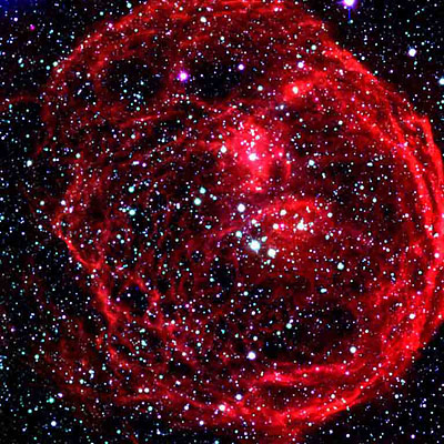N 70, também catalogada como Henize 70, é uma "superbolha" na Grande Nuvem de Magalhães - uma galáxia satélite da Via Láctea, localizada no céu do sul a uma distância de cerca de 160 000 anos-luz. N 70 é uma bolha luminosa de gás interestelar, com aproximadamente 300 anos-luz de diâmetro. Deve a sua origem a ventos oriundos tanto de estrelas quentes de elevada massa, como de explosões de supernovas. O seu interior é constituído por gás quente, pouco denso, em expansão. O estudo de objectos como N 70 permite explorar a conexão entre os ciclos de vida das estrelas e a evolução das galáxias. Estrelas de massa elevada, com massas pelo menos dez vezes superiores à massa do Sol, têm uma grande influência no meio que as envolve. São responsáveis pelo enriquecimento químico do gás interestelar a partir do qual novas gerações de estrelas e sistemas estelares se formarão. Esta imagem foi obtida com a câmara de CCD FORS2 em Novembro de 1999 no observatório Paranal, no Chile.