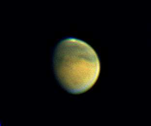 Embora ainda pequeno, o planeta vermelho já se deixa mostrar, ou como nos mostrou o astrónomo amador João Gregório, fotografar. Esta excelente imagem, obtida esta semana com um telescópio Maksutov-Cassegrain mostra de forma bastante clara a calote polar marciana, bem como algumas marcas de albedo características. Com pouco mais de 14 segundos de arco de tamanho aparente, Marte irá crescer mais ao longo dos próximos meses, até à oposição no dia 7 de Novembro, quando terá quase 20 segundos de arco de diâmetro aparente, e transitará a uma altitude de 67º, colocando-se assim em excelentes condições de observação.