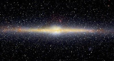Esta imagem foi obtida pelo satélite COBE e mostra o plano da nossa galáxia na banda do infravermelho. O disco fino da nossa galáxia espiral é visto claramente, com as estrelas a aparecerem a branco e a poeira interestelar a vermelho. Até à invenção do telescópio, ninguém sabia exactamente o que era a Via Láctea, aquela mancha branca, leitosa, visível a olho nu numa noite límpida. Cerca de 300 anos atrás, os primeiros telescópios permitiram concluir que ... a Via Láctea era composta por estrelas! No início do séc.XX, telescópios mais poderosos revelaram que a Via Láctea era apenas mais uma galáxia no meio de muitas mais. Nos dias de hoje, telescópios ainda mais poderosos permitem-nos estudar a nossa galáxia de muitas formas através do uso de instrumentos sensíveis a radiação proveniente de várias bandas do espectro electromagnéctico. É o caso dos instrumentos a bordo do COBE, um satélite lançado em 1989 com o objectivo de medir a radiação de fundo infravermelha e de micro-ondas produzida no início do Universo.