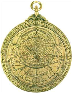 Astrolábio usado para calcular as posições dos astros no céu.