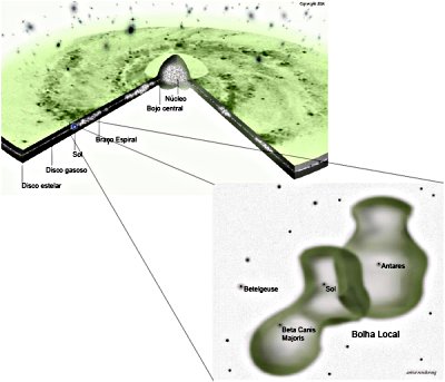 Figura 1: Localização da Bolha Local no contexto da Via Láctea. Crédito: ESA.