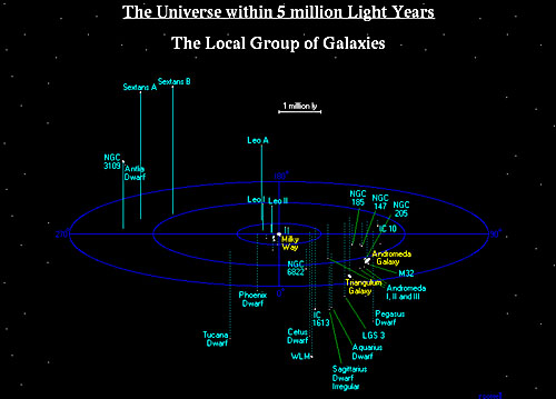 Se quisermos um exemplo de um grupo de galáxias típico em que a ligação gravitacional entre os seus membros é menos forte, não precisamos de ir mais longe do que considerar a nossa própria galáxia e a sua vizinhança: o Grupo Local.