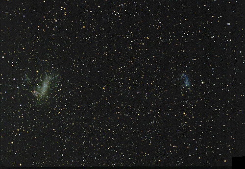 A uma escala mais pequena, e considerando a galáxia de Andrómeda, a imagem mostra ainda duas das suas galáxias companheiras muito próximas: as anãs elípticas M32 e M110.