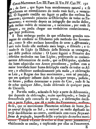 "As vantagens, que resultam de se cultivar eficazmente a Astronomia, como todas as mais partes da Matemática, de que ela depende, são de tão grande ponderação, e de consequências tão importantes ao adiantamento geral dos conhecimentos humanos; e à perfeição particular da Geografia, e da navegação; que tem merecido em toda a parte atenção dos Soberanos, fazendo edificar Observatórios magníficos destinados ao progresso da Astronomia, como Ciência necessária para se conseguir o conhecimento Globo terrestre; e se terem nas mãos as chaves do Universo.