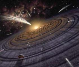 A existência destes discos está hoje largamente comprovada através de diversas observações astronómicas. Um dos exemplos mais famosos é o disco de poeira em torno da estrela jovem Beta Pictoris. Na Figura 11 podemos ver uma imagem desse disco resultante de uma observação do telescópio Hubble. Esta é uma imagem em cor falsa obtida através do obscurecimento da luz da estrela central, deixando visível o disco de poeira . Este disco é um potencial sistema solar e estudos posteriores têm procurado determinar a possível existência de planetas no disco.