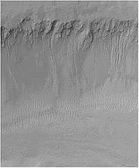 Um dos mais interessantes resultados da câmara fotográfica transportada pela MGS (MOC - Mars Orbital Camera) foi revelar-nos inúmeras características que, se fossem vistas na Terra, nos indicariam imediatamente a presença de água.